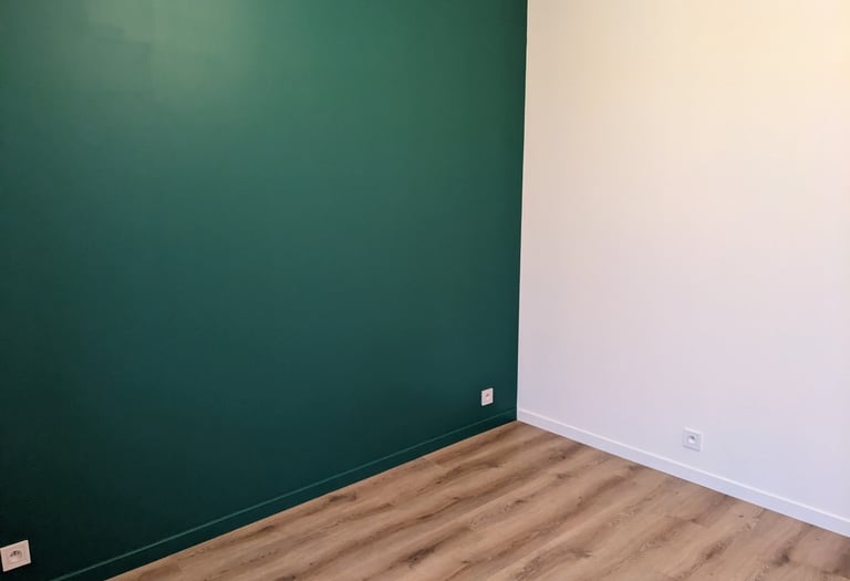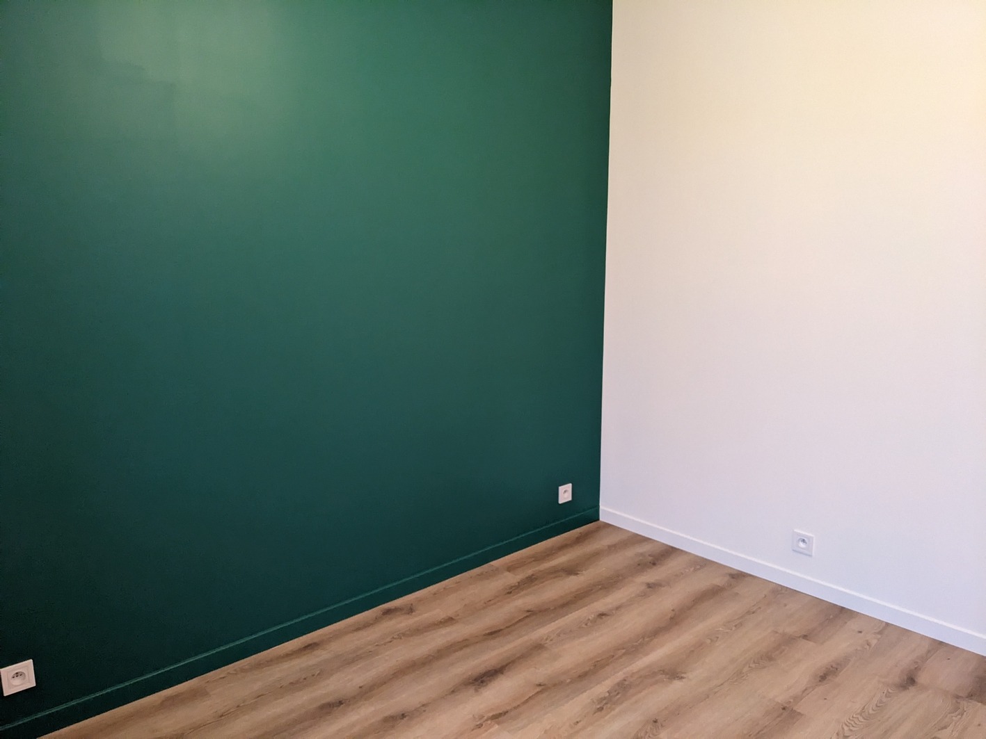 Réalisation des peintures, pose de sol à clipser stratifié ou PVC, carrelage mural, plinthes