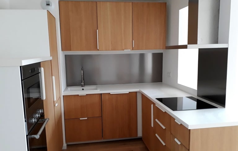 Montage des meubles, découpe et pose des plans de travail, réalisation de crédences, installation d'évier, mitigeur et électroménager.
